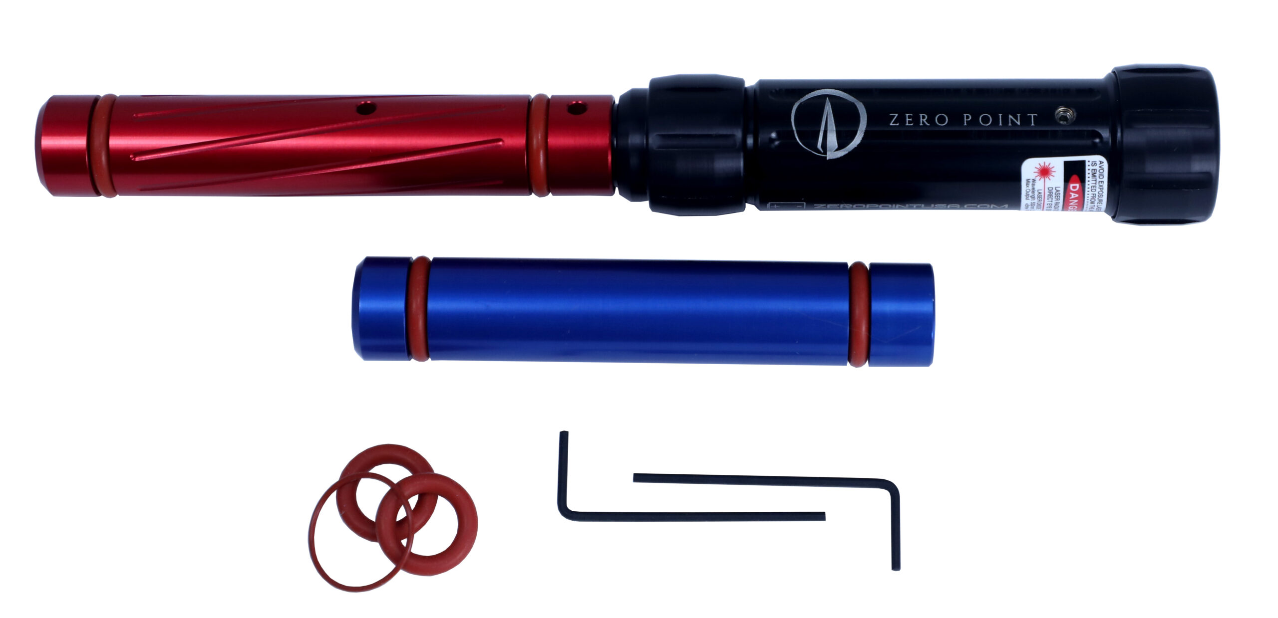 The ADAPTOS TiTAN Laser Suite is designed specifically for the TiTAN inner diameter of the smooth barrel (blue mandrel) and rifle barrel (red mandrel). The mandrels are designed to easily remove from the barrels with lubrication on the o-rings. Set screws are exposed allowing the operator to rezero if desired. It is recommend to fill in the setscrews with a removable silicion to further enhance the water resistant capabilities of the laser.